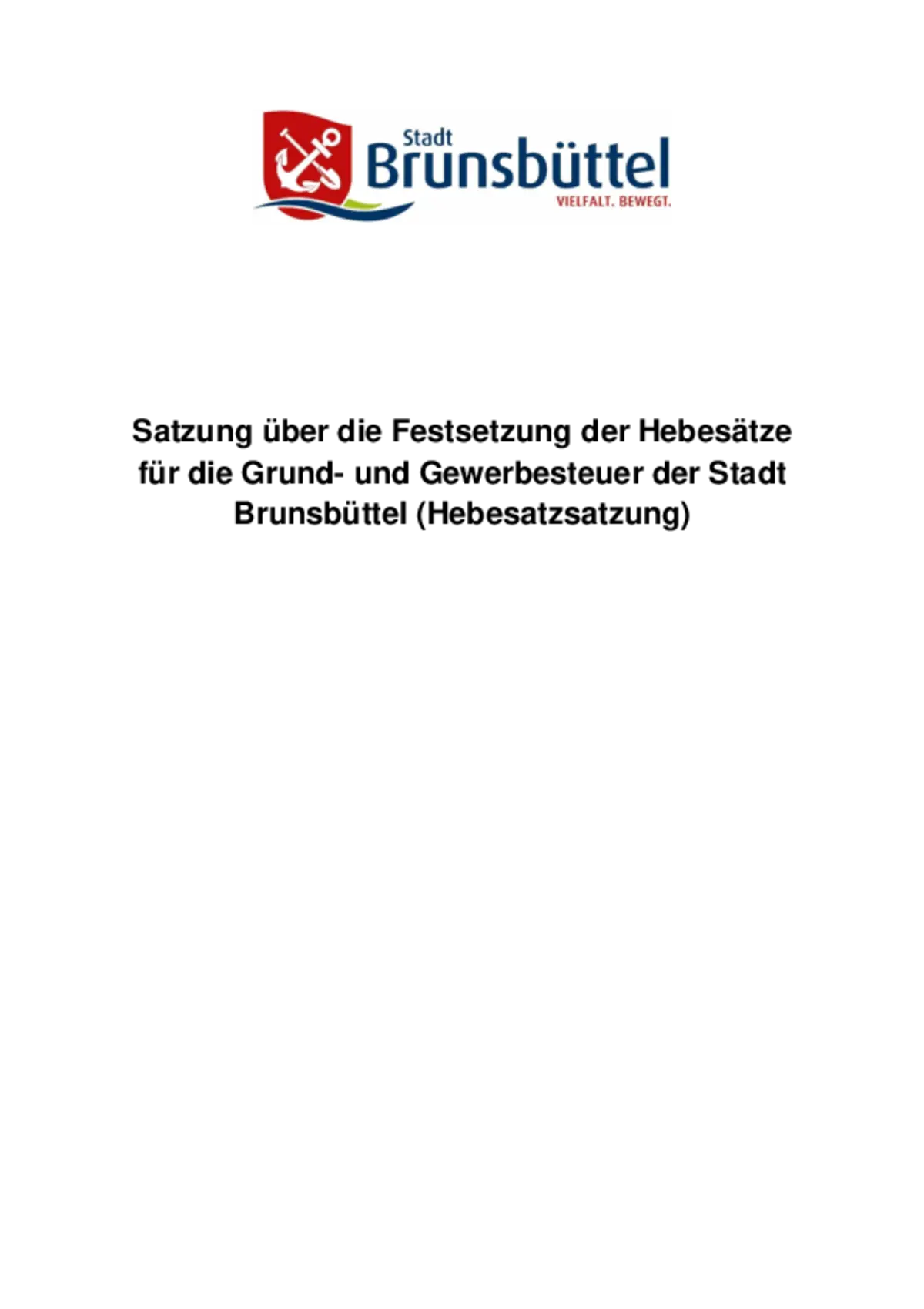 Die vorstehende Bekanntmachung 08/2024 der Stadt Brunsbüttel steht ab dem 13.12.2024 auf der Homepage der Stadt Brunsbüttel unter www.stadt.brunsbuettel.de zur Verfügung. Die Bekanntmachung enthält die Satzung über die Festsetzung der Hebesätze für die grund- und Gewerbesteuer der Stadt Brunsbüttel (Hebesatzsatzung).