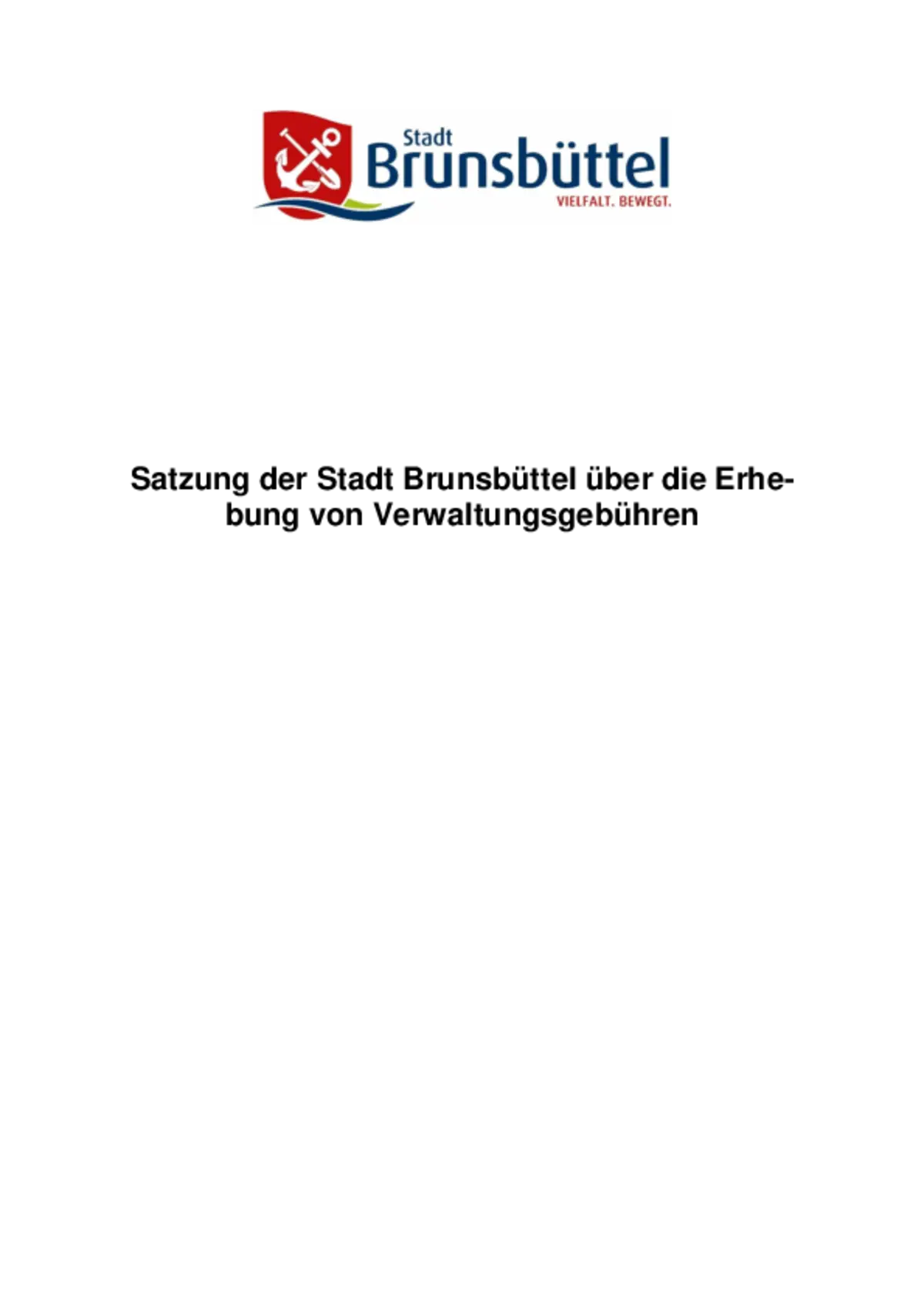 Die vorstehende Bekanntmachung 09/2024 der Stadt Brunsbüttel steht ab dem 16.12.2024 auf der Homepage der Stadt Brunsbüttel unter www.stadt.brunsbuettel.de zur Verfügung. Die Bekanntmachung enthält die Satzung der Stadt Brunsbüttel über die Erhebung von Verwaltungsgebühren.