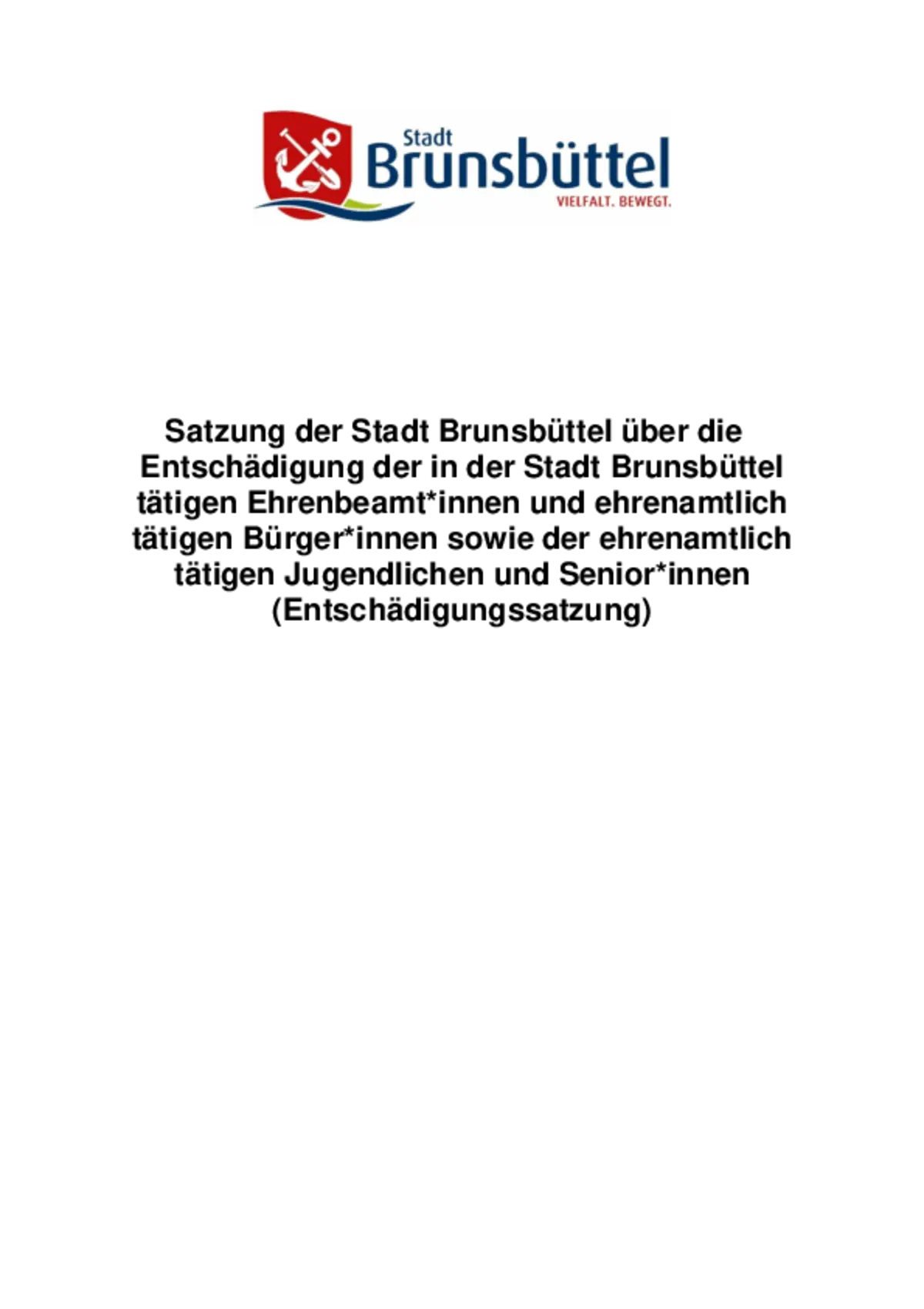 Die vorstehende Bekanntmachung 27/2025 der Stadt Brunsbüttel steht ab dem 04.06.2025 auf der Homepage der Stadt Brunsbüttel unter www.stadt.brunsbuettel.de zur Verfügung. Die Bekanntmachung enthält die Satzung der Stadt Brunsbüttel über die Entschädigung der in der Stadt Brunsbüttel tätigen Ehrenbeamt*innen und ehrenamtlich tätigen Bürger*innen sowie der ehrenamtlich tätigen Jugendlichen und Senior*innen (Entschädigungssatzung).