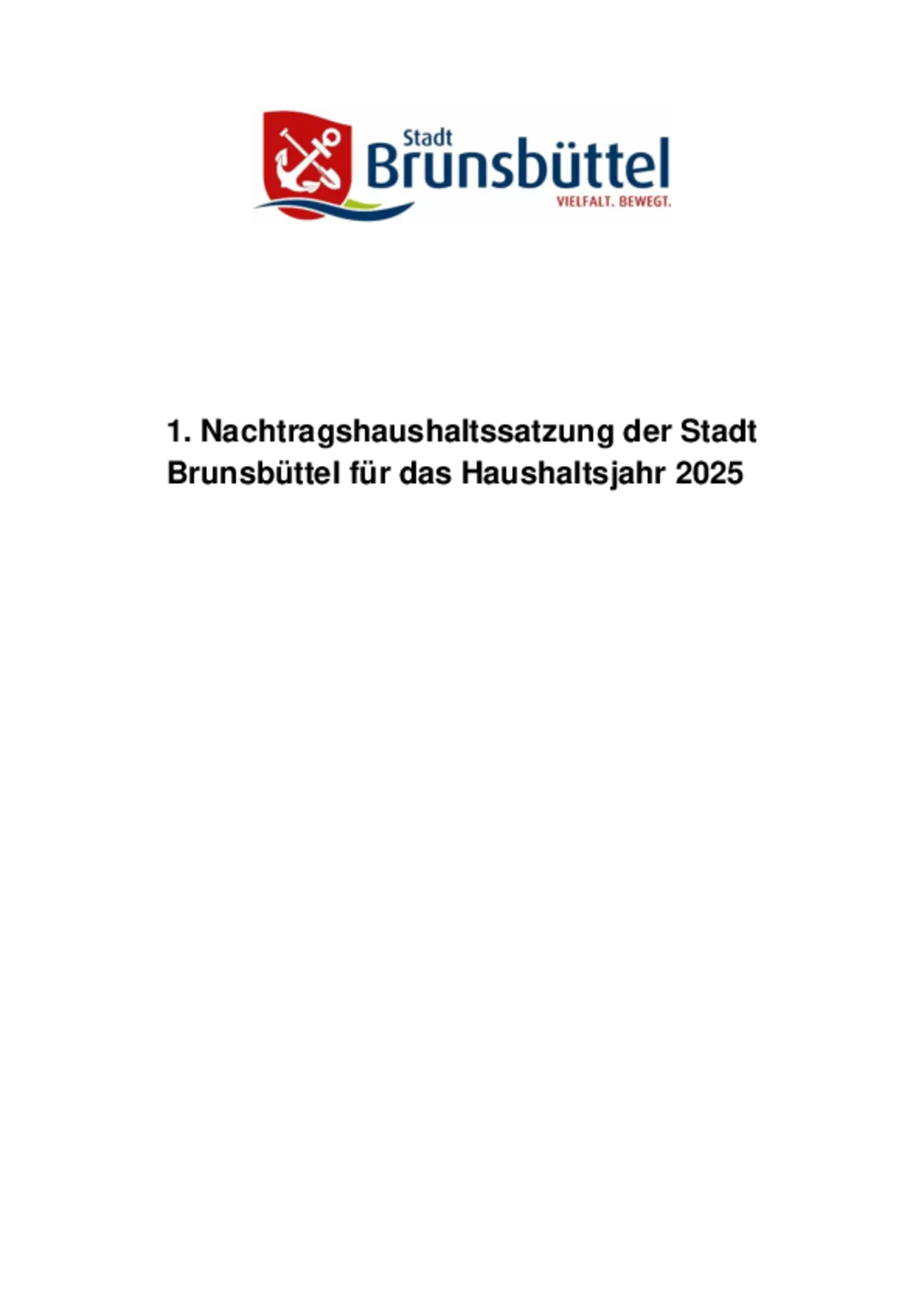 Die vorstehende Bekanntmachung 34/2025 der Stadt Brunsbüttel steht ab dem 14.07.2025 auf der Homepage der Stadt Brunsbüttel unter www.stadt.brunsbuettel.de zur Verfügung. Die Bekanntmachung enthält die 1. Nachtragshaushaltssatzung der Stadt Brunsbüttel für das Haushaltsjahr 2025.