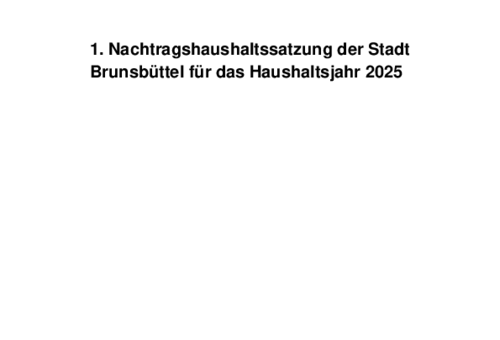 Die vorstehende Bekanntmachung 34/2025 der Stadt Brunsbüttel steht ab dem 14.07.2025 auf der Homepage der Stadt Brunsbüttel unter www.stadt.brunsbuettel.de zur Verfügung. Die Bekanntmachung enthält die 1. Nachtragshaushaltssatzung der Stadt Brunsbüttel für das Haushaltsjahr 2025.