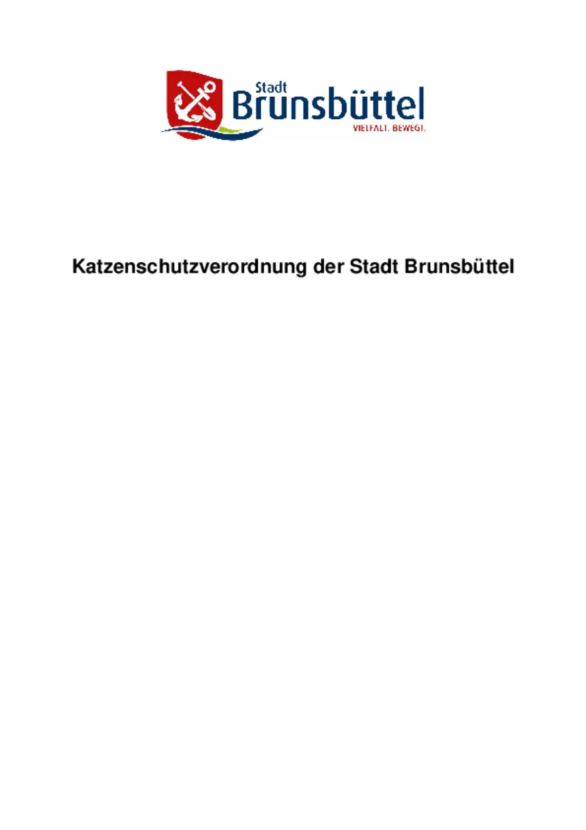 Die vorstehende Bekanntmachung 12/2024 der Stadt Brunsbüttel steht ab dem 19.12.2024 auf der Homepage der Stadt Brunsbüttel unter www.stadt.brunsbuettel.de zur Verfügung. Die Bekanntmachung enthält die Katzenschutzverordnung der Stadt Brunsbüttel.