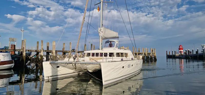 Unser Hochseekatamaran, eine Lagoon 500, ist 16 Meter lang und 8,5 Meter breit, hat ein Gewicht von 30 Tonnen und einen Tiefgang von 1,4 Meter. Unter Deck befinden sich 3 luxuriöse Doppel-Gästekabinen mit eigenem WC/Duschbad und Smart-TV. Insgesamt verfügt das Schiff über Vollausstattung.